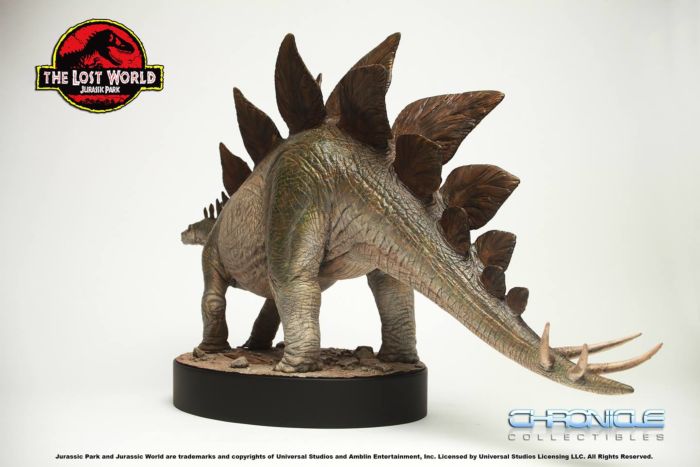 The first in Chronicle Collectibles Maquette series, the Stegosaurus was molded from an original studio maquette produced by Stand Winston Studios and painted like the dinosaurs depicted in the 1997 hit film. The statue is set on an oval base with a rocky surface to resemble a riverbed. Standing a 17” tall, and a whopping 31” long, this statue is sure to be a standout in the home of any Jurassic Park fan!