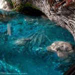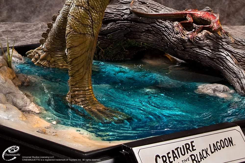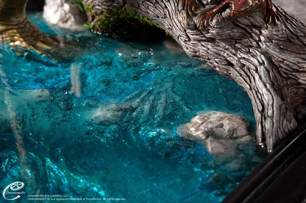 Elaborate display base featuring a lush, realistic Amazonian water environment.