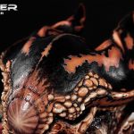 Elite Creature Collectibles is proud to present their 1:1 scale Lisker Zoanoid bust from the film Guyver. The iconic character was designed by Creature FX artist Eddie Yang and based on the Japanese manga series “Bio Booster Armor Guyver” created by Yoshiki Takaya. The film was directed by Screaming Mad George and ECC art Director Steve Wang. Here is a team shot of the Bad guys from Guvyer.