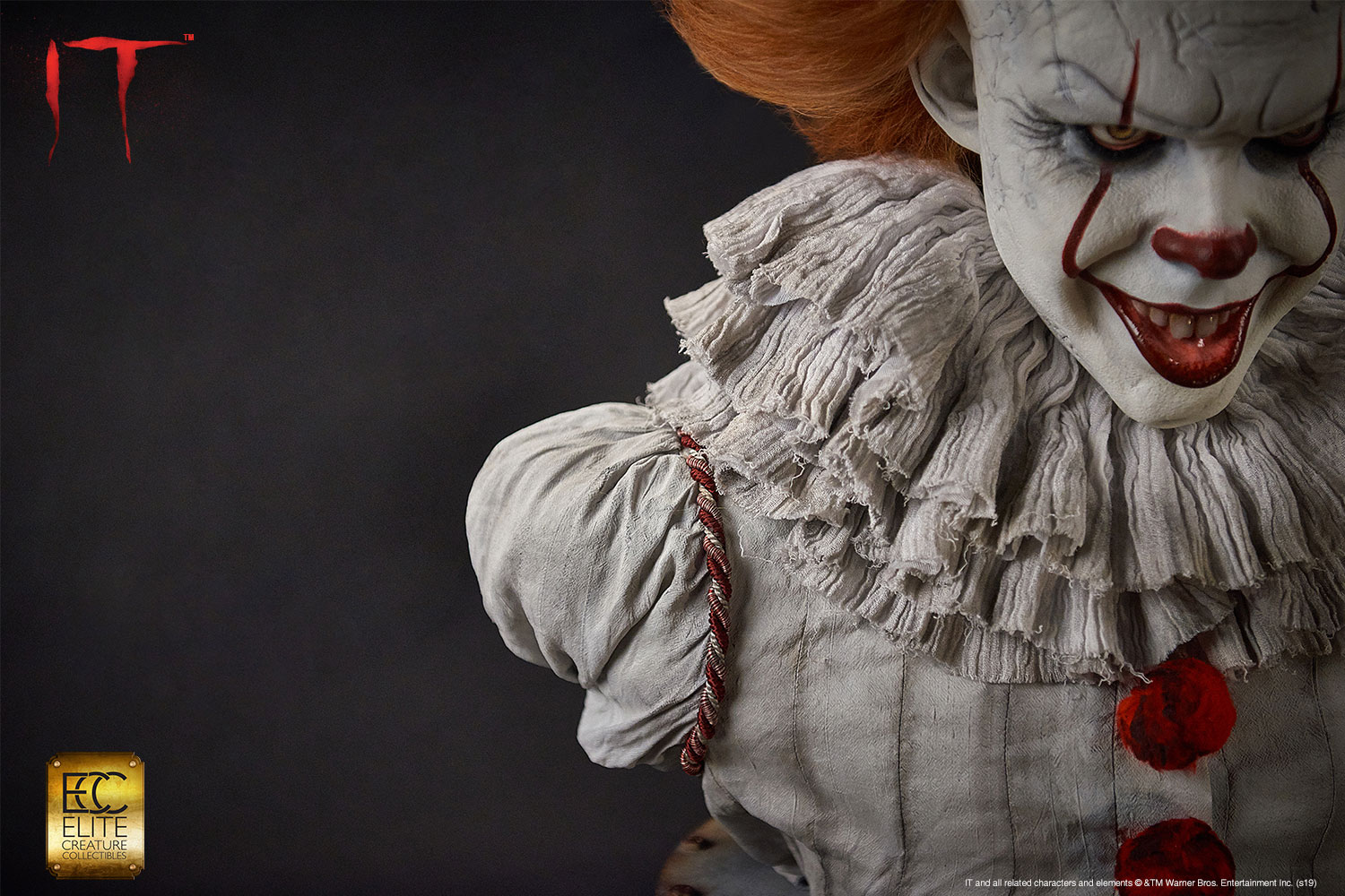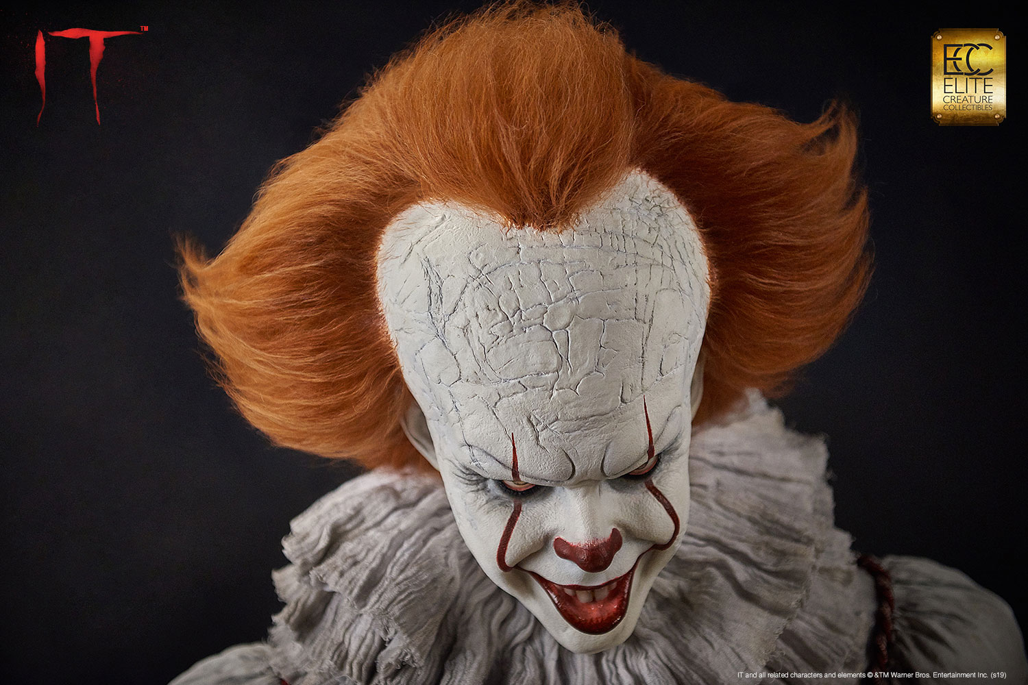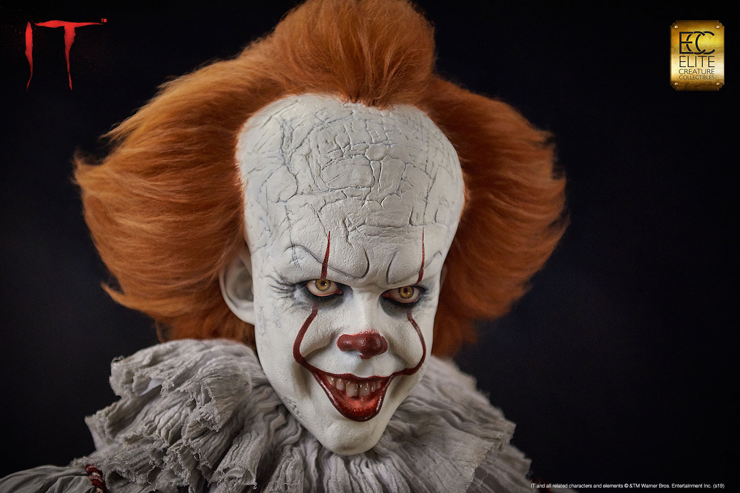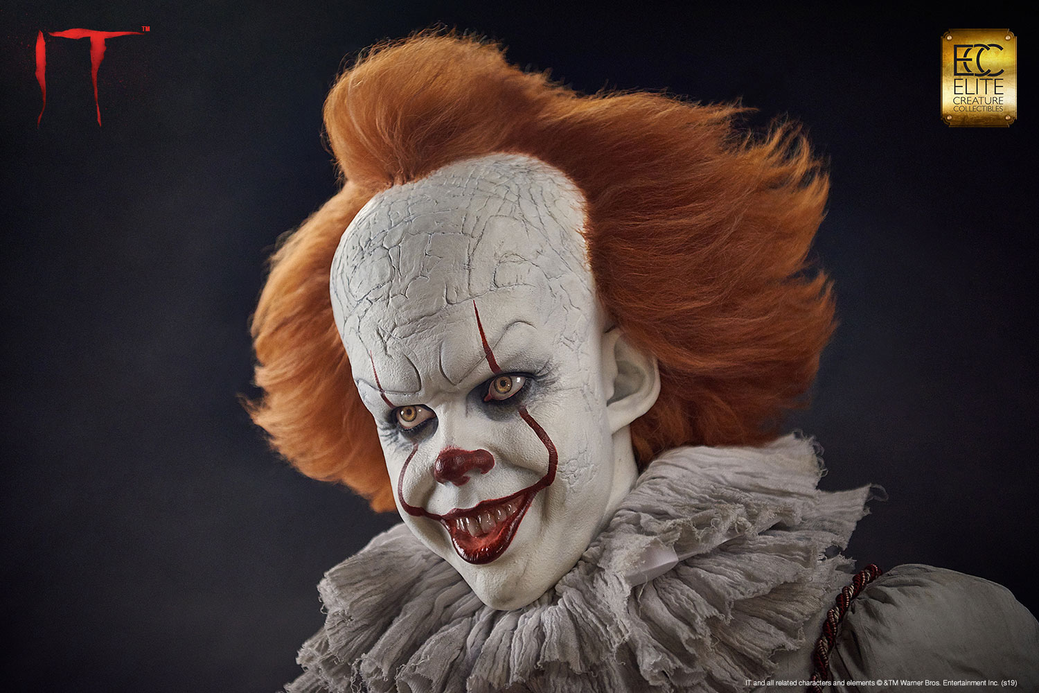 Elite Creature Collectibles is proud to introduce our museum-quality Pennywise bust from the movie IT based on the 1986 novel of the same name by Stephen King. This iconic villain is perfectly sculpted by legendary Hollywood makeup effects sculptor Mitch Devane, whose credits include the The Nutty Professor, Nightmare on Elm Street3: Dream Warrior, Tim Burton’s Planet of the Apes, Mighty Joe Young and Bram Stoker’s Dracula.