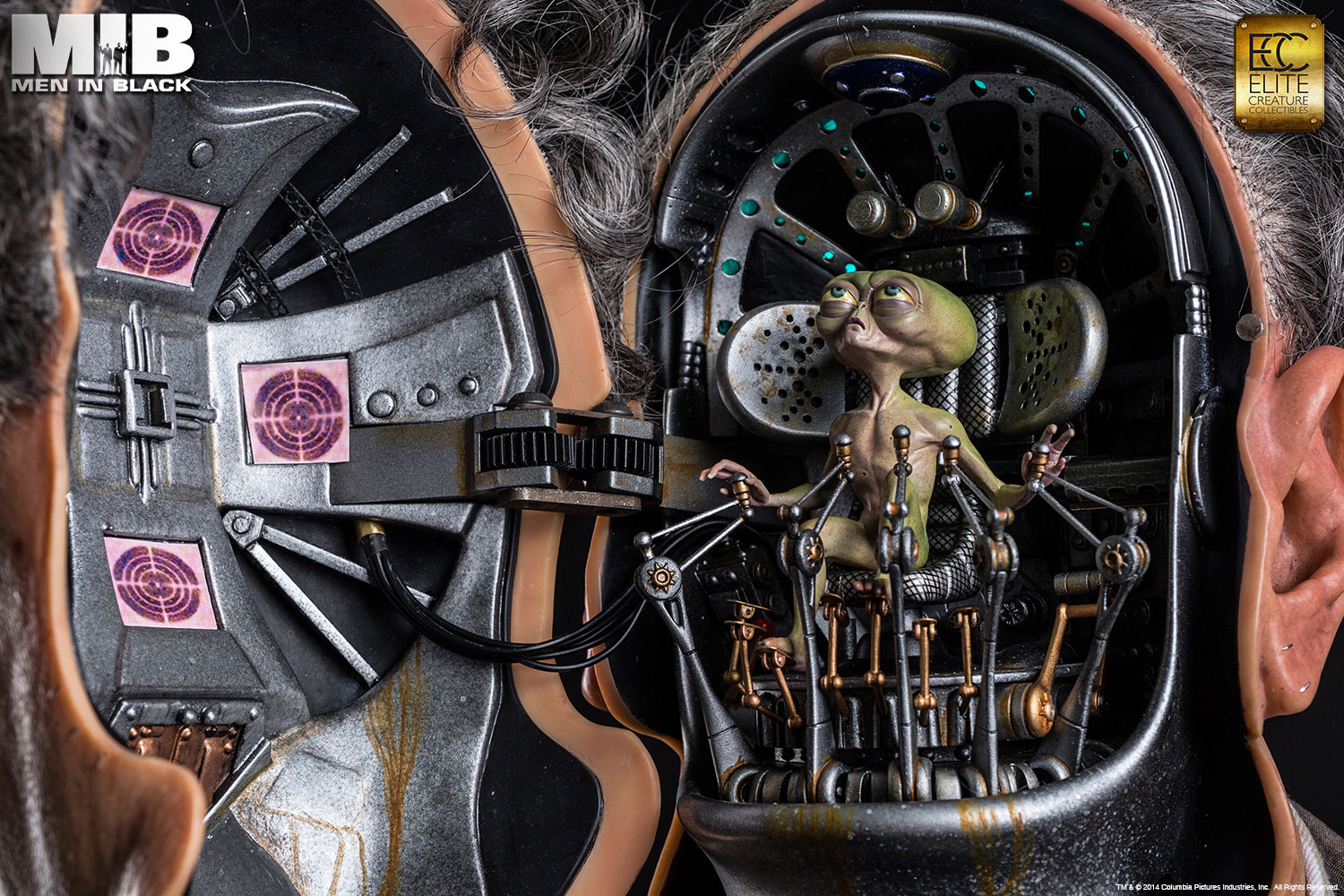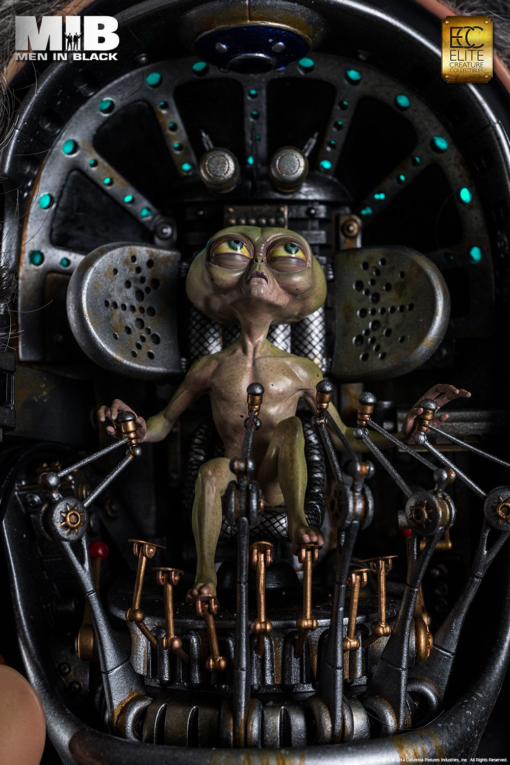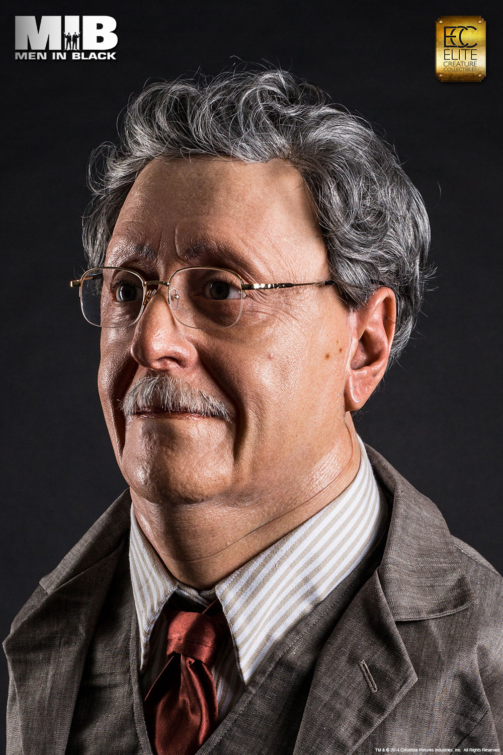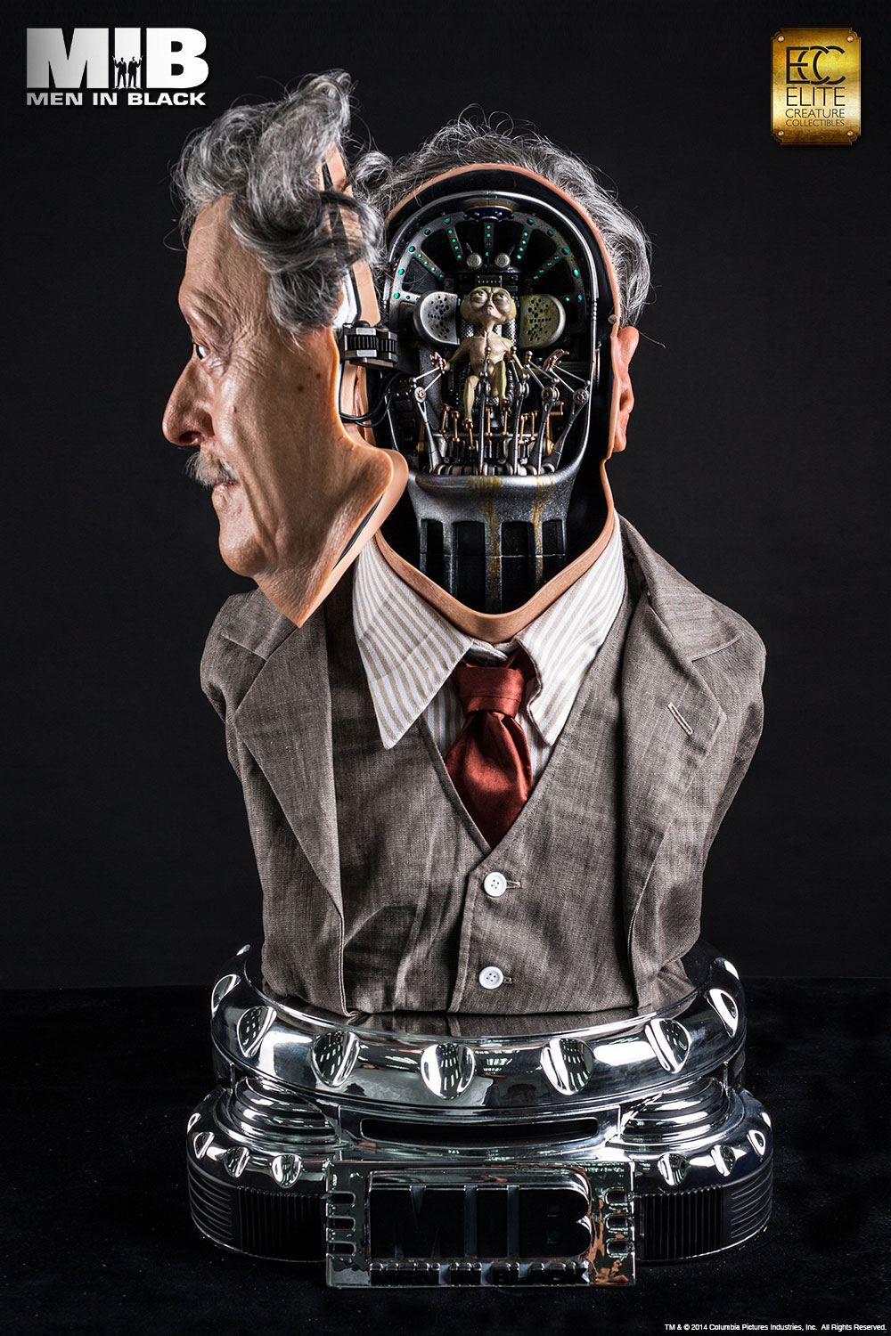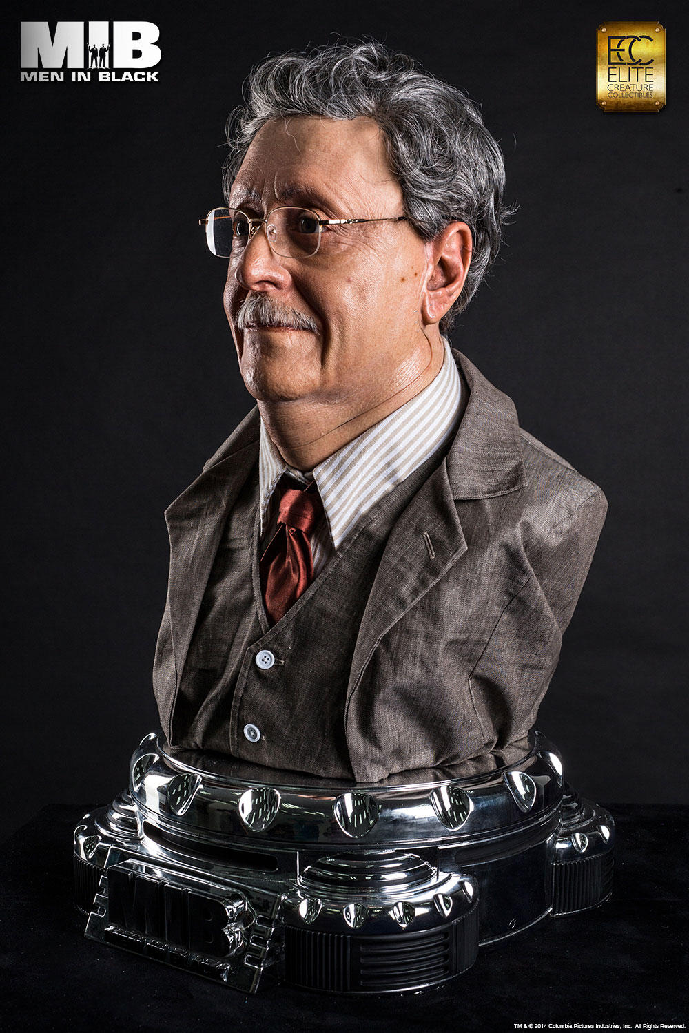 “To prevent war, the Galaxy is on Orion’s belt!”Gentle Rosenberg was the prince of the Arquillians Empire. He disguised himself as the owner of Rosenberg Fine Jewelry Store and hid in Brooklyn New York until he was assassinated by Edgar the Bug. Elite Creature Collectibles is proud to present this faithful reproduction of the Rosenberg bust in full 1:1 scale. The face of each bust is cast in translucent resin for a life-like skin effect, and comes with custom hair, hand tied mustache and museum grade glass eyes and clothing. The interior cockpit was digitally replicated with stunning accuracy and detail, complete with light up functions. The life size Rosenberg bust is a must-have for all MIB or Sci-fi fans.