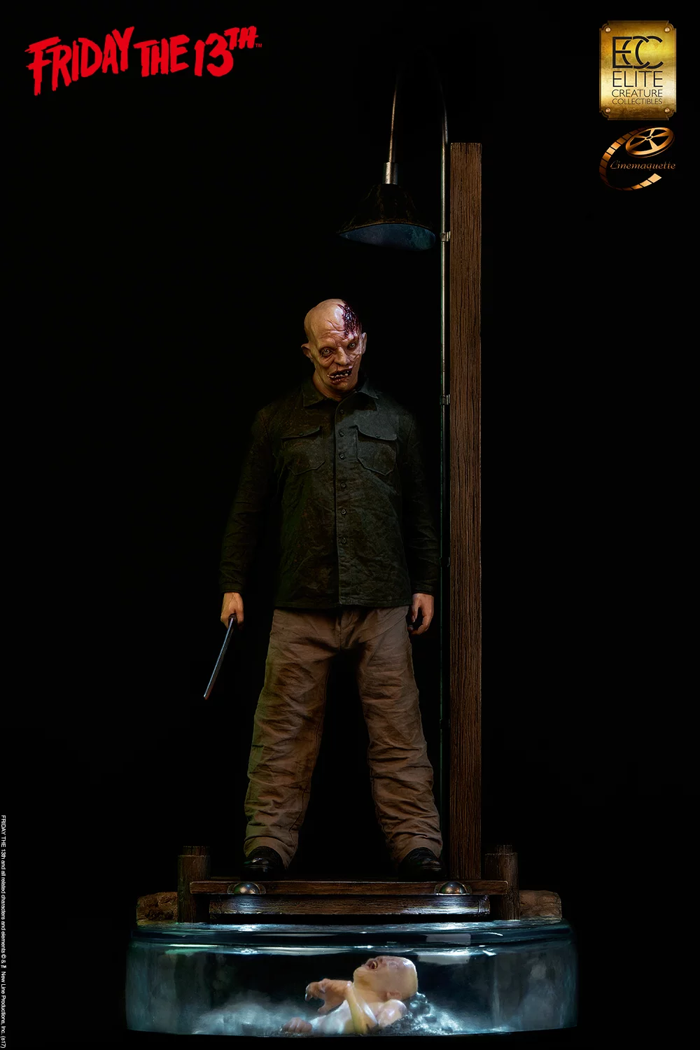 Elite Creature Collectibles is proud to introduce our museum-quality Jason Voorhees “tribute” maquette entitled: “Dark Reflection,” designed by Steve Wang. This dramatic maquette is crafted in 1:3 scale with remarkable attention to detail, standing 45 inches tall, and is the ultimate display piece for all fans of the Friday the 13th films.