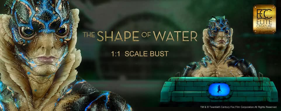Elite Creature Collectibles is proud to present our museum quality amphibian man from the movie The Shape of Water. The bust was sculpted by the original key artist Mike Hill who created the amphibious character for the movie.