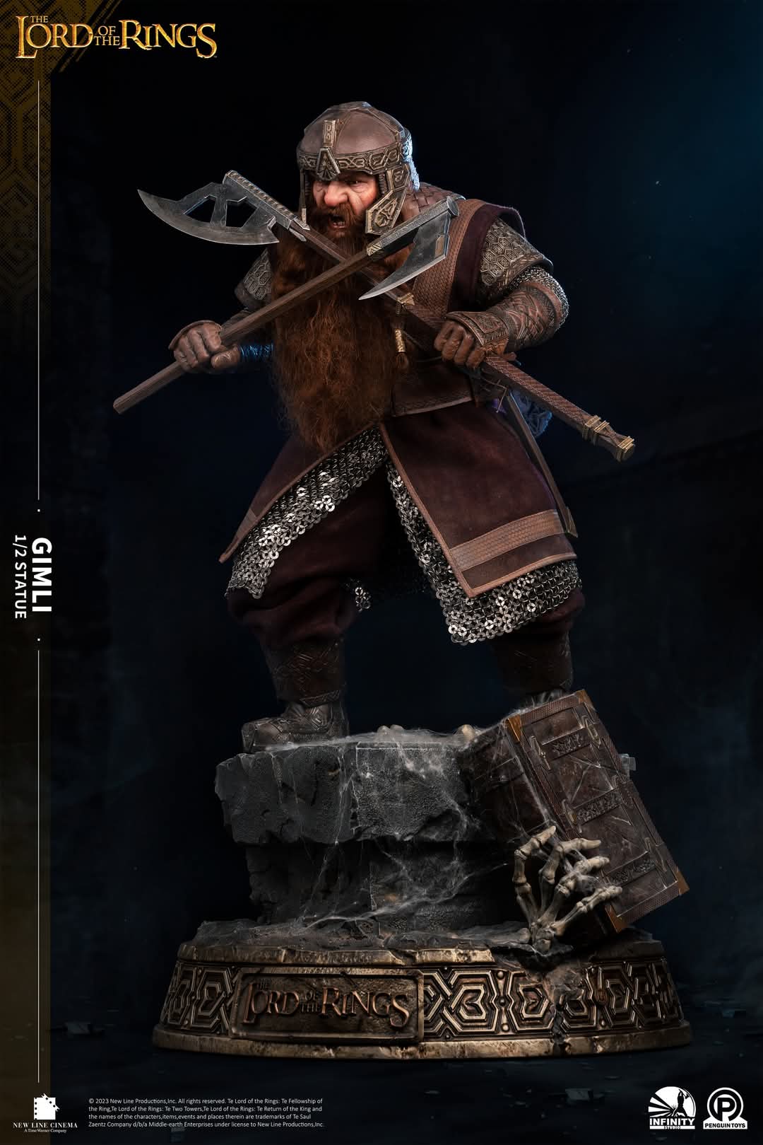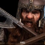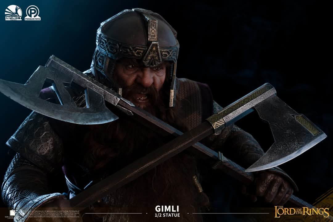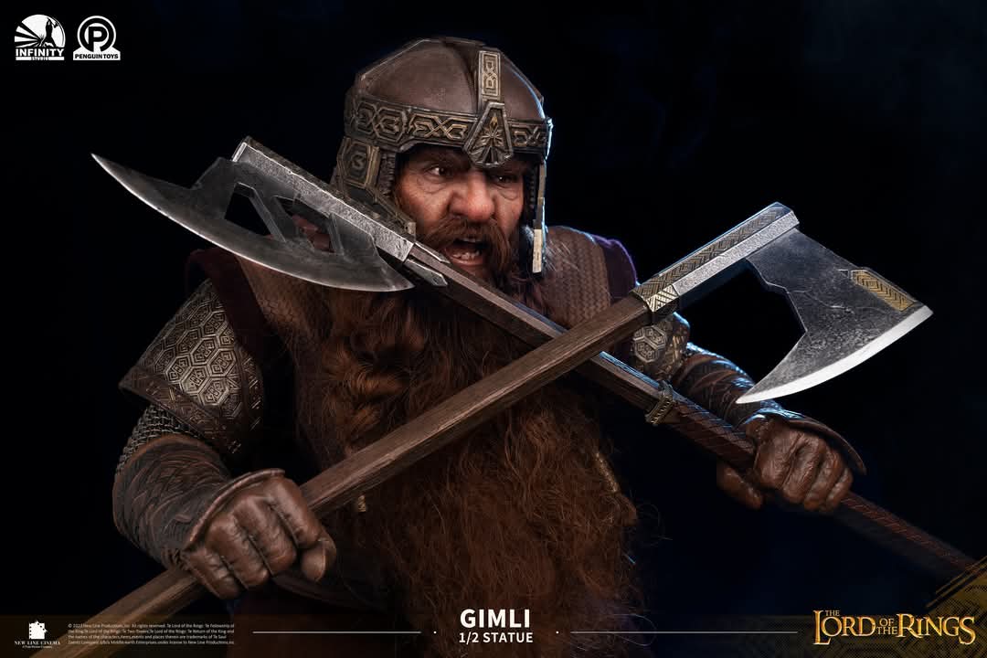 The statue vividly portrays Gimli’s battle with the Orcs in the Mines of Moria, as depicted in the film.