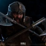 As a member of the Fellowship of the Ring, Gimli has shown great courage and resilience. He formed a deep friendship with Legolas during their journey. He escorted Frodo Baggins to destroy the One Ring, wielding his battle-axe as a noble and tough warrior.