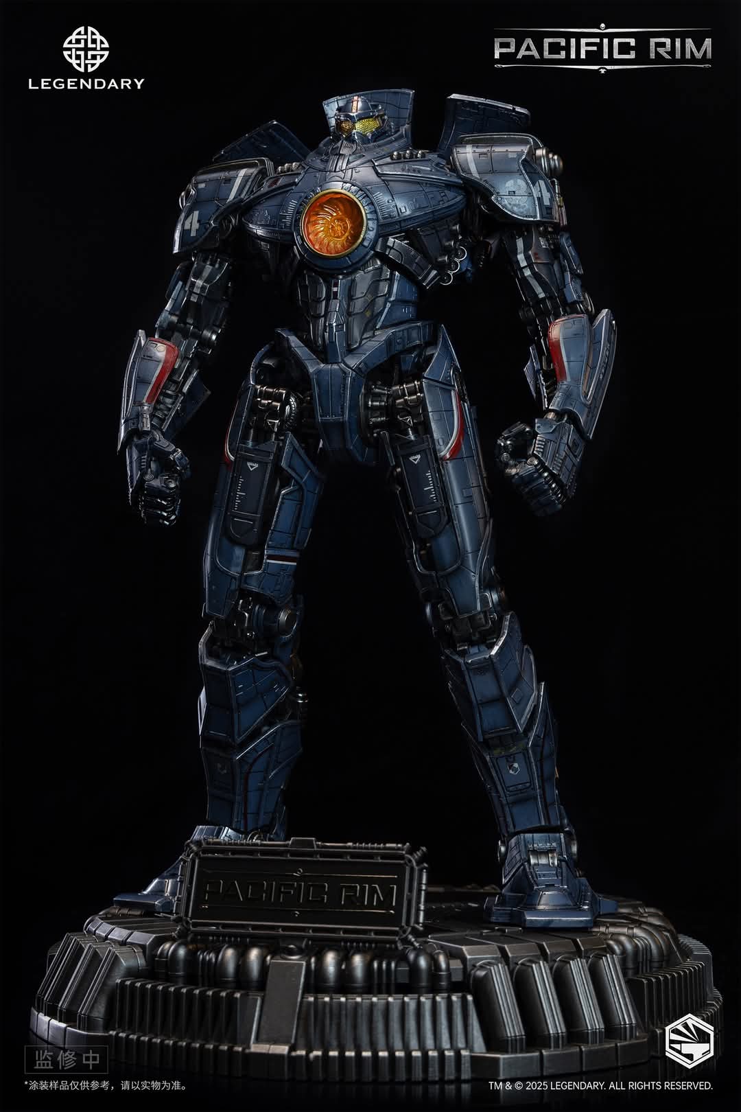 The entire figure, including the cockpit, boasts 8 LED-lit areas. It also includes a display plaque with the “Pacific Rim” movie logo and a meticulously weathered display base. The base attaches via built-in magnets in the feet, ensuring an unobstructed showcase of the product.