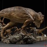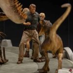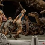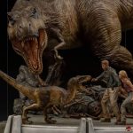 On a base imitating marble, after all Iron Studios spared no expense, with the film’s logo adorning the front, the fossils fallen at the feet of the figures, with Lex and Tim Murphy protected by Ellie Sattler and Alan Grant from two Velociraptors and the imposing T-Rex circling ready to capture the Velociraptor that is about to jump on Alan, Iron Studios presents it’s statue “The Final Scene – Demi Art Scale 1/20 – Jurassic Park – Iron Studios”.