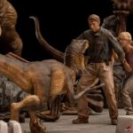After the collapse of the first park on Nublar Island, some of the most dangerous predatory species escape from their cages, including mortal Velociraptors. Seeking refuge and protection in the control room at the visitor center, doctors Alan Grant and Ellie Sattler, along with the children Lex and Tim Murphy, grandchildren of John Hammond, the park’s creator, are chased by raptors. The four protagonists run out of the control room and reach the main lobby, and they find themselves trapped when one of the predators advances to strike, jumping on their prey, is unusually captured in the jaws of a T-Rex, which invades the space in search of his hunting. Thus, the giant tyrant king of the dinosaurs, involuntarily becomes the savior of the group, when confronting and being confronted by the Velociraptors, giving the scientists and the children a chance to escape.