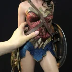1:3 JL Wonder Woman was produced with all of its exposed skin to be made in silicone. This took an extraordinary amount of effort, as the structure was newly designed for limb stability. The extra skin surface needed to express all the details of different areas of real skin as well. And we had to test the ability for this prototype to be replicated in production. The head was once again designed by Soyoung Lee, who took her experience in the previous design for WW84 and used it to portray another portrait of Gal Gadot’s Wonder Woman that was just as beautiful as the previous version but with a totally different look and feel.