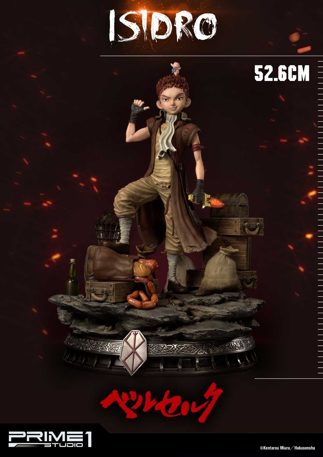 Prime 1 Studio and Sideshow Collectibles are proud to present 1/4 scale UPMBR-13: Isidro from Berserk. Isidro is a cheeky and hot-headed young vagabond who ran away from home in search of adventure. He has always dreamed to be, if not a soldier, the best mercenary warrior of his time. The inspiration for his ambitions is the legend “Hundred Man Slayer” who fought in the original Band of the Falcon. Although Guts has never revealed to Isidro that he is in fact the young boy’s idol. Being a younger member of Guts traveling party, Isidro is training under Guts, hoping to achieve his dream of becoming the greatest swordsman in the world. Isidro stands about 21 inches tall with Puck on it. Isidro statue is the best companion piece to add in your Berserk Collection alongside with UPMBR-01/EX: Guts, The Black Swordsman.