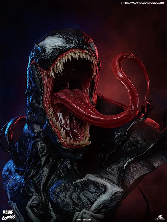 Queen Studios 1/1 scale Venom bust bring to life the Lethal Protector New York like you’ve never seen him before. The symbiote’s eyes are bone white, his mouth is open, and his tongue is whipping out, ready to eat the head of his next target. The statue stands at 80cm tall and is recreated from the LGY #193 Venom #28 Comics Elite Virgin Edition Valerio Giangiordano Variant Cover. Queen Studios are thrilled to announce that this full-size 1/1 Venom bust will be a counterpart to out 1/1 Carnage Life-size bust from the notorious Absolute Carnage comic series.